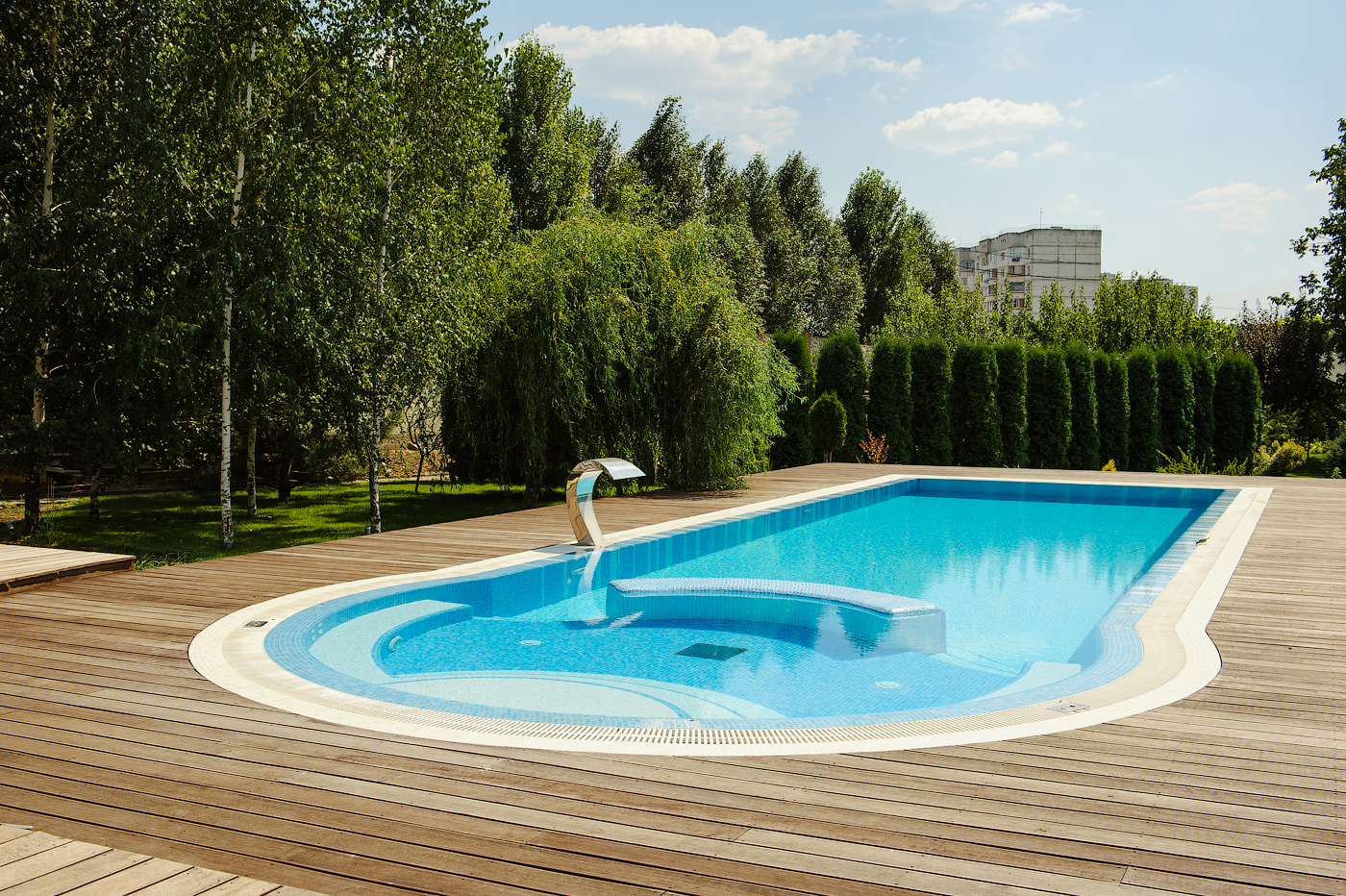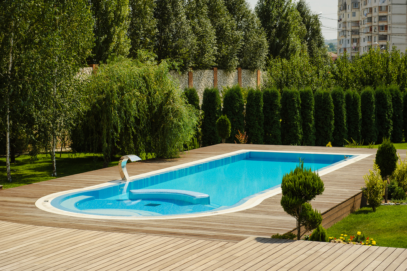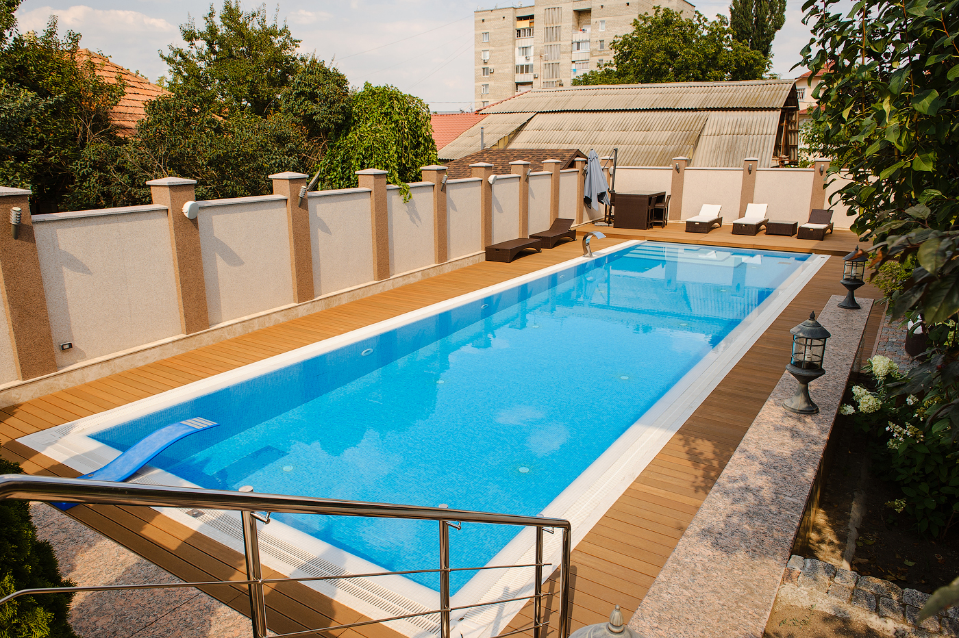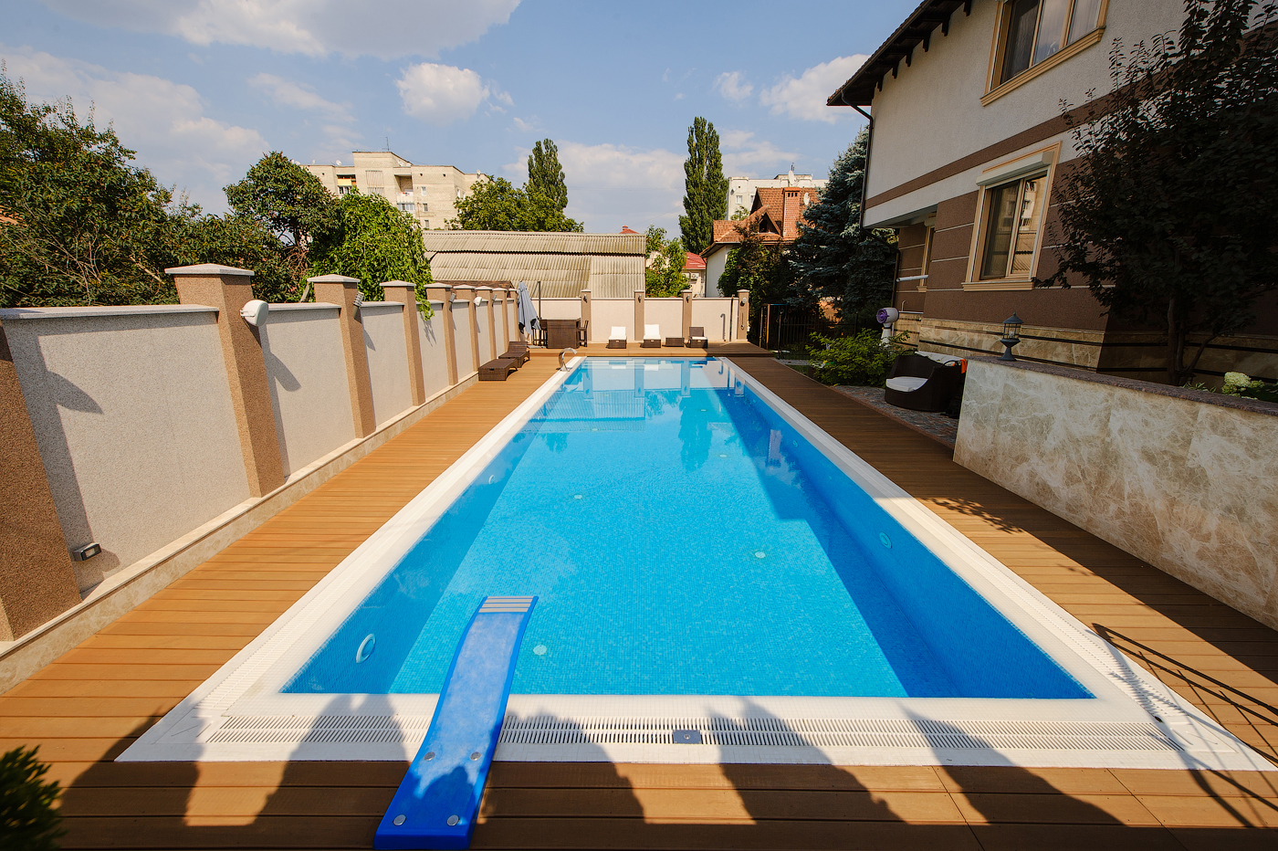 Decking-ul din lemn asigură o durabilitate și o rezistență maximă. Faceți din piscina dvs. un loc minunat unde să vă relaxați pe deplin.