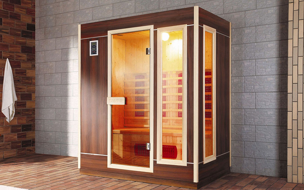 Saunele infaroșii externe sunt efectuate din laminat, placaj și alte elemente, iar sauna infraroșie internă poate fi efectuata din lemn de cedru, arin, plop. Toți arborii au efecte plăcute asupra organismului uman. În cabină sunt instalați emitatori ceramici cu radiație infraroșiie.